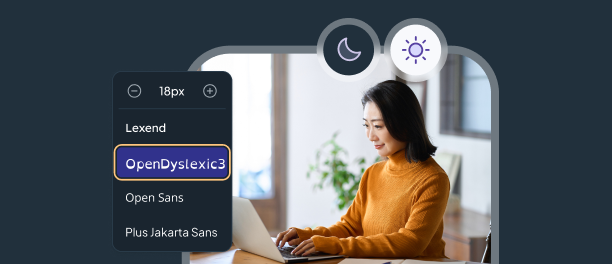 Reduce eye strain with Light/Dark Mode, improve readability with dyslexia-friendly fonts, and adjust font size to suit your needs.