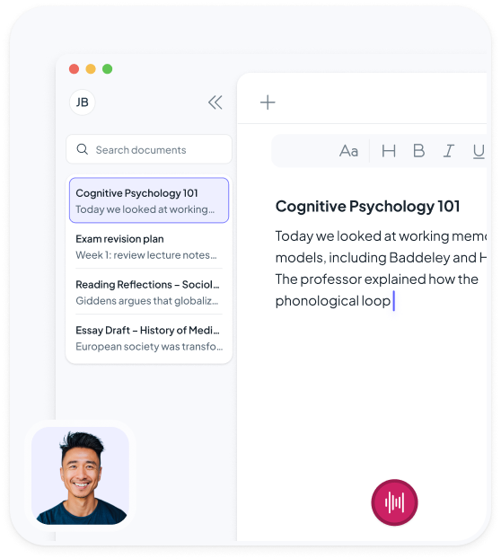 Capture notes up to 3x faster. Speak your thoughts directly and spend less time typing, more time learning.